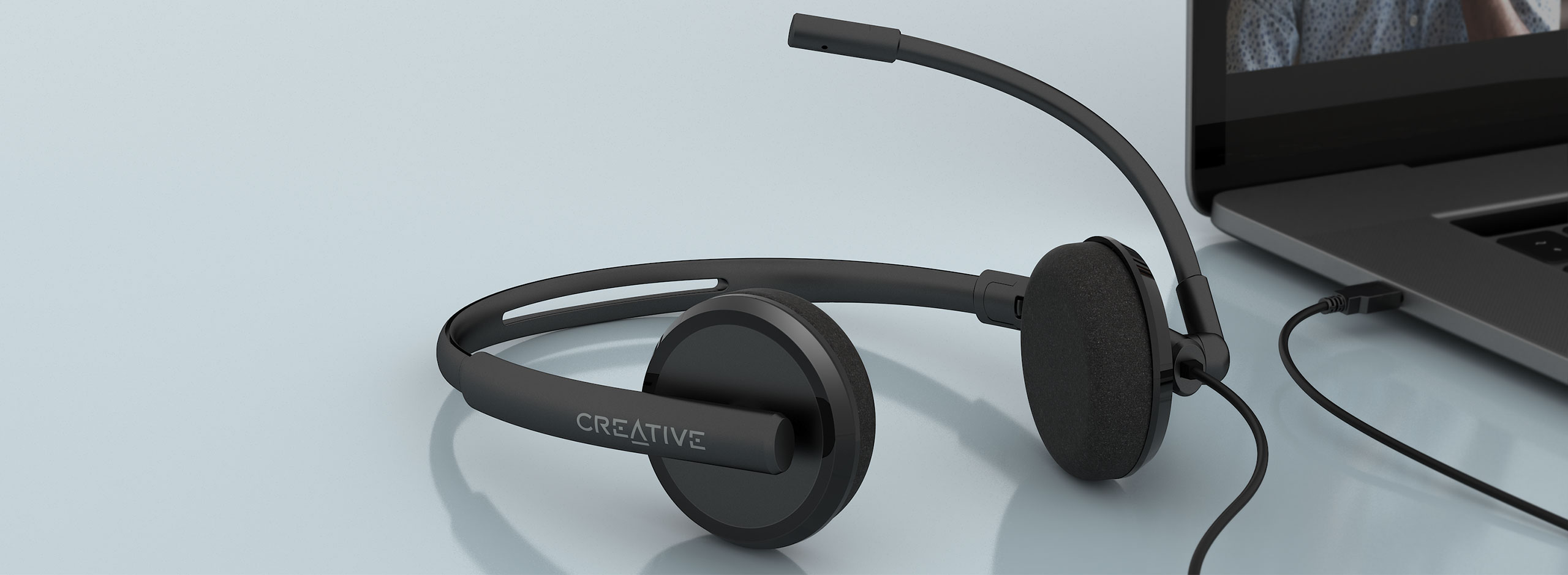 AURICULAR C/MICROF. CREATIVE HS-220 USB-A 30MM NOISE-CANCELLING MUTE LIGERO 108G BLACK