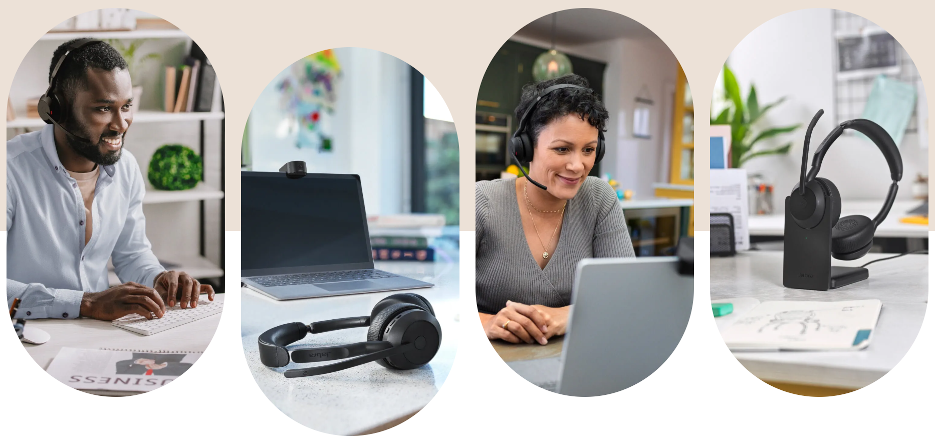 Los auriculares con micrófono profesionales que le siguen el ritmo durante su jornada de trabajo híbrido, esté donde esté.