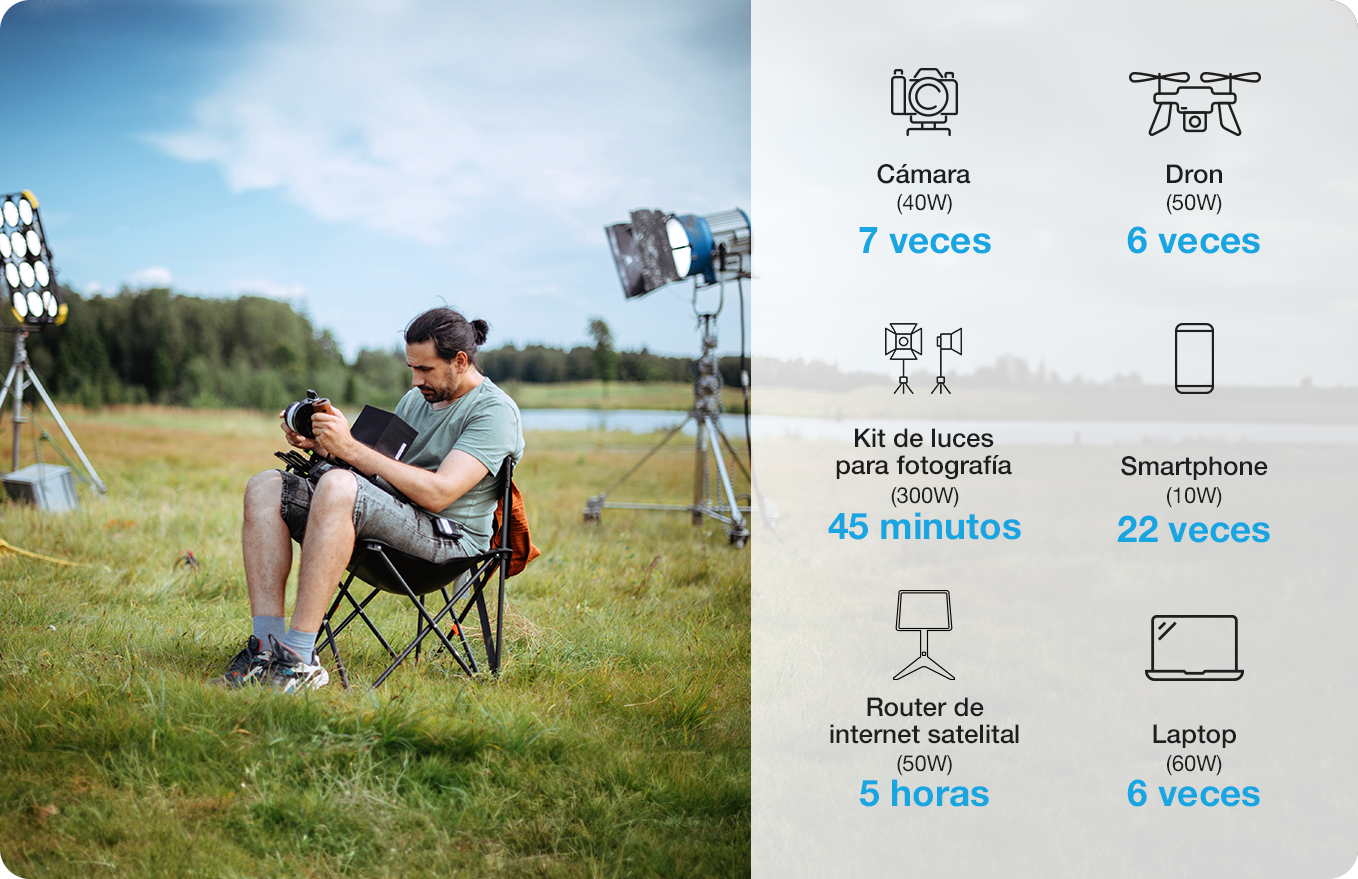 La solución perfecta para aventuras al aire libre, emergencias, uso en casa u oficina y uso profesional. Provee energía en cortes eléctricos. No requiere combustible. Ideal para exteriores, emergencias y uso doméstico.