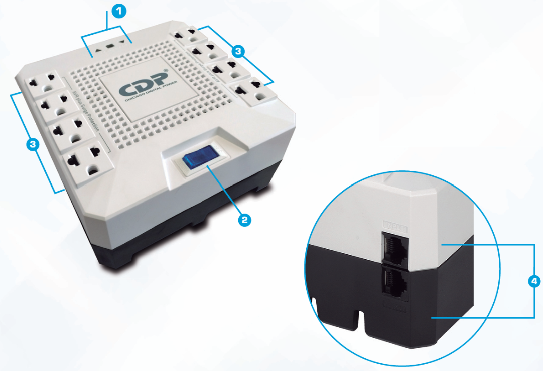 El diseño se completa con un supresor de voltaje de alto desempeño que absorbe picos y altos voltajes, componentes incorporados para la filtración de ruidos armónicos que dañan circuitos lógicos de la computadora y su protector de picos y altos voltajes en línea telefónica y DSL para complementar una solución ideal de protección a su inversión de problemas agudos de energía.