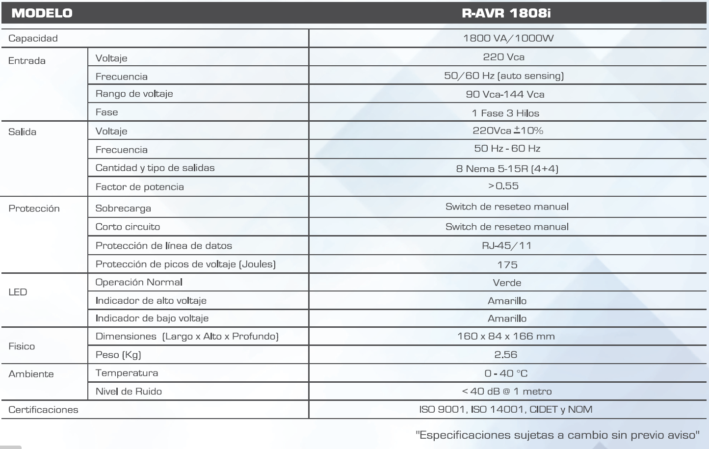 - Esta línea de reguladores de voltaje, corrige altas y bajas tensiones de fluido eléctrico, que pueden causar daños a PC's y sus accesorios de CA.
