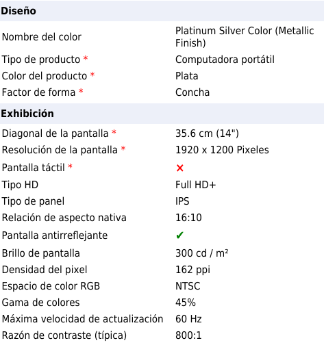 Establece una nueva base en durabilidad, portabilidad y funciones con tecnología de IA que garantizan una productividad esencial y seguridad confiable para los usuarios. DELL Pro 14 PC14250. Tipo de producto: Computadora portátil, Factor de forma: Concha. Familia de procesador: Intel Core Ultra 7, Modelo del procesador: 255U. Diagonal de la pantalla: 35.6 cm (14"), Tipo HD: Full HD+, Resolución de la pantalla: 1920 x 1200 Pixeles. Memoria interna: 16 GB, Tipo de memoria interna: DDR5-SDRAM. Capacidad total de almacenaje: 512 GB, Unidad de almacenamiento: SSD. Modelo de gráficos en tarjeta: Intel Graphics. Sistema operativo instalado: Windows 11 Pro. Color del producto: Plata. Peso: 1.36 kg