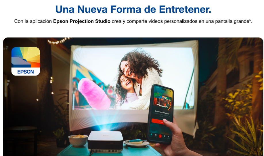 - Convierte tu smartphone en un control remoto: Controla el proyector con la aplicación Epson Projection Studio1 para facilitar la navegación, el control de volumen, la reproducción y mucho más
