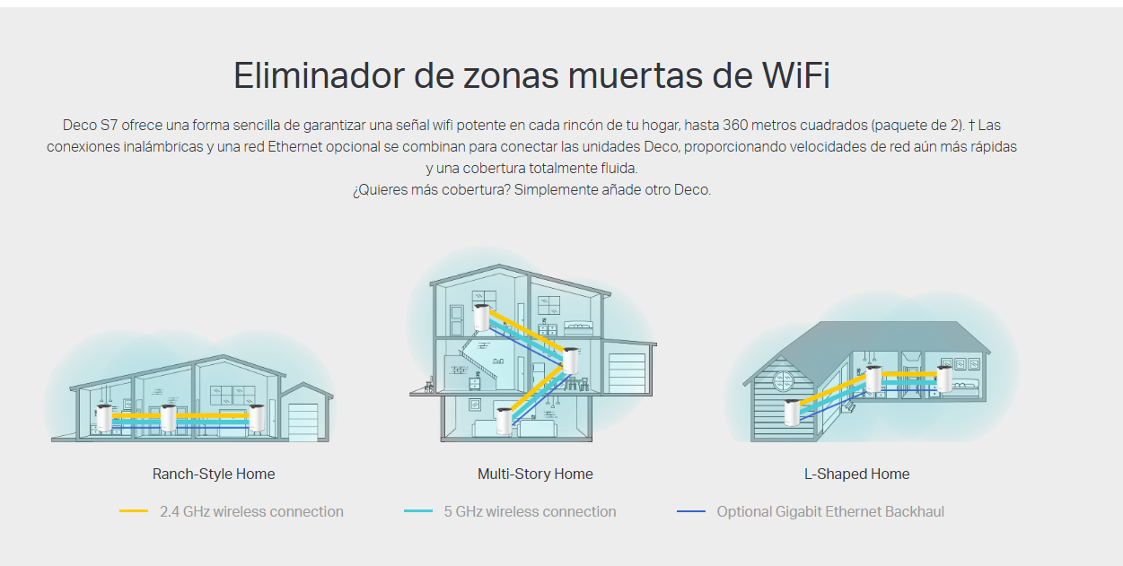 Cobertura mejorada – Con la avanzada tecnología Deco Mesh, las unidades se integran para formar una red unificada con un solo nombre. Los dispositivos cambian automáticamente entre Decos a medida que te desplazas por tu casa para obtener la mayor velocidad posible.