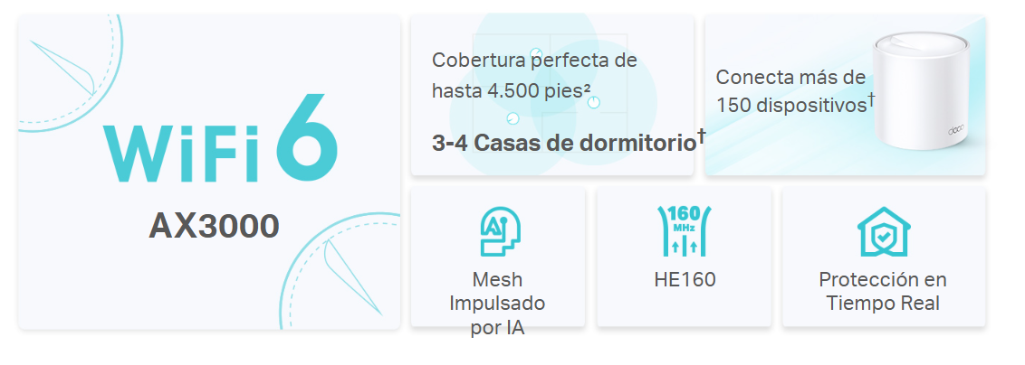 - Mesh Impulsado por IA - Aprende de forma inteligente el entorno de red para proporcionar una conexión WiFi ideal y exclusiva para su hogar.