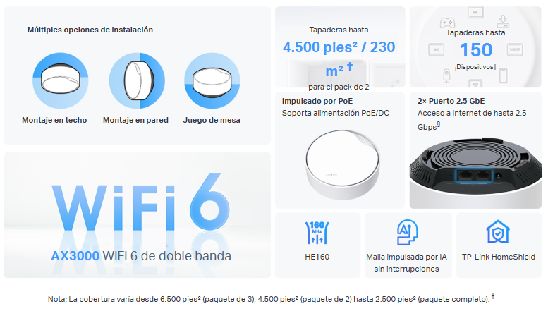 - Mesh Impulsado por IA – Aprende de forma inteligente su entorno de red para brindar el WiFi ideal exclusivo para su hogar.