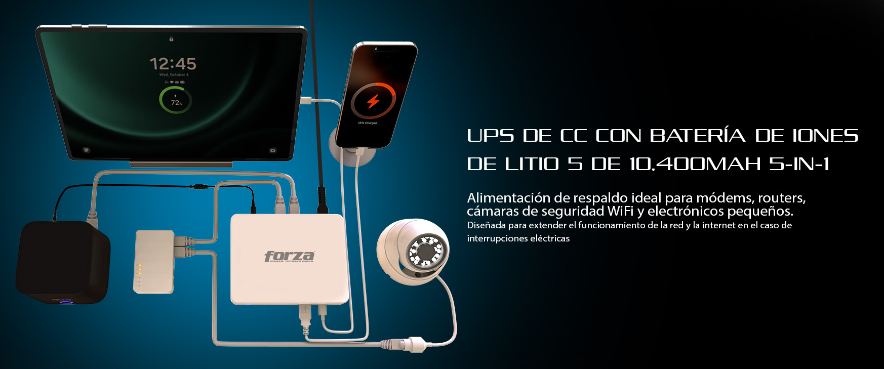 UPS FORZA PoE Y BANCO DE ENERGIA USB-C C/BATERIA 35W, SALIDAS 5/9/12/15/24V CC (DC-350USBP) (NT3) Protege tus equipos contra irregularidades en el suministro eléctrico